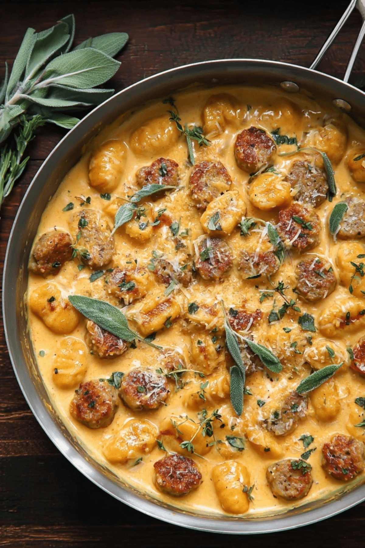 - Finish and Serve: Once the sauce has thickened and the gnocchi are fully cooked, remove from heat. Garnish with the remaining fresh sage and thyme before serving.
