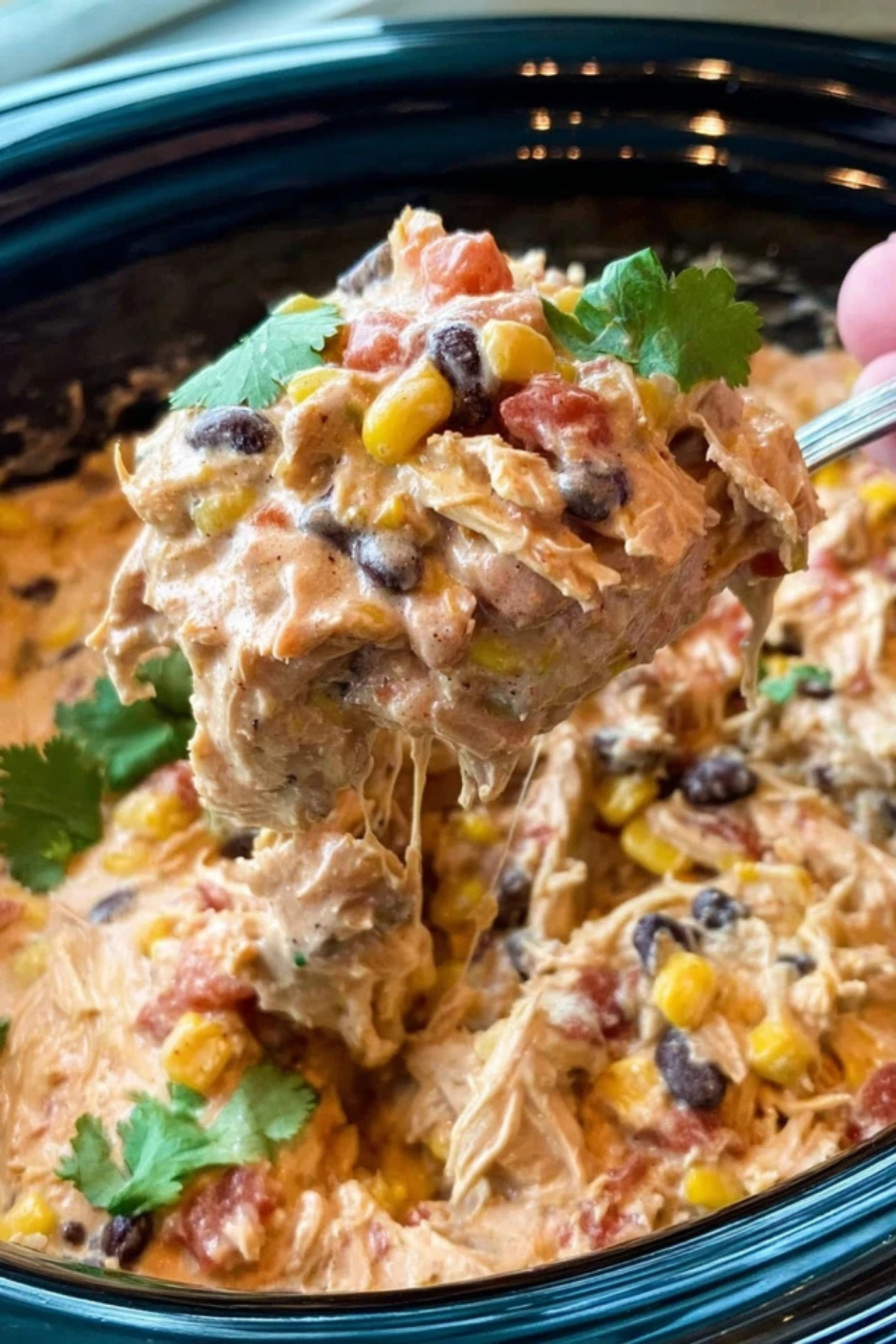 Yes, you can use frozen chicken for this creamy slow cooker fiesta chicken recipe. If you’re using frozen chicken breasts, simply increase the cooking time by about one hour. Ensure that the chicken reaches an internal temperature of 165°F before shredding.