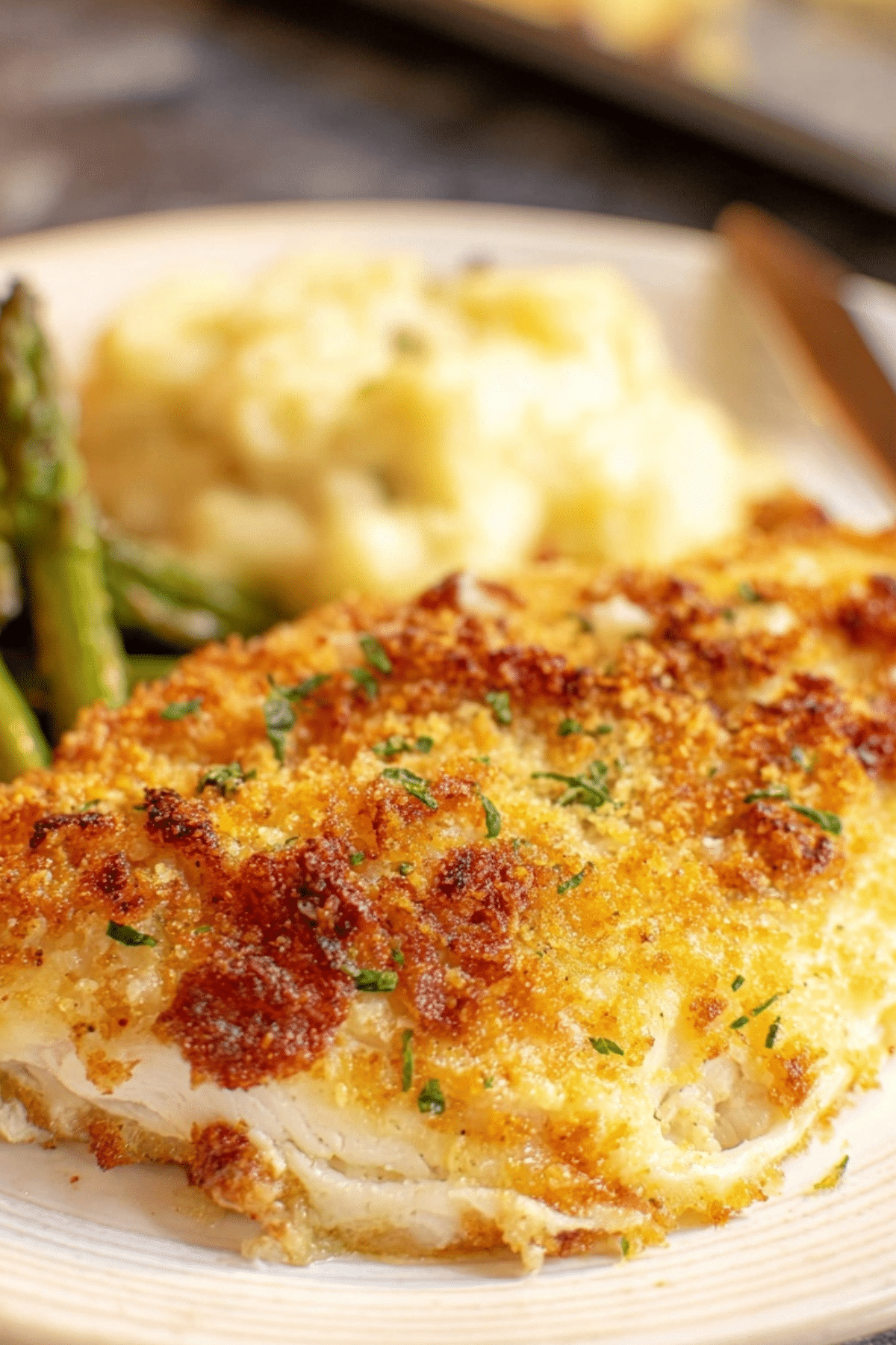 The marinade infuses the chicken with tangy Italian and ranch flavors, keeping it moist and flavorful. The cheese sauce adds a creamy, cheesy layer that melts perfectly over the chicken. Finally, the Parmesan breadcrumb crust gives the dish its signature crisp finish.