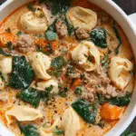 Sausage Tortellini Soup is a creamy and hearty one-pot meal made with Italian sausage, three-cheese tortellini, sweet potatoes, and spinach. The perfect comfort food, this easy recipe is packed with flavor and nutrients. It’s a satisfying dish for busy weeknights or casual gatherings, offering a balance of protein, carbs, and fiber.