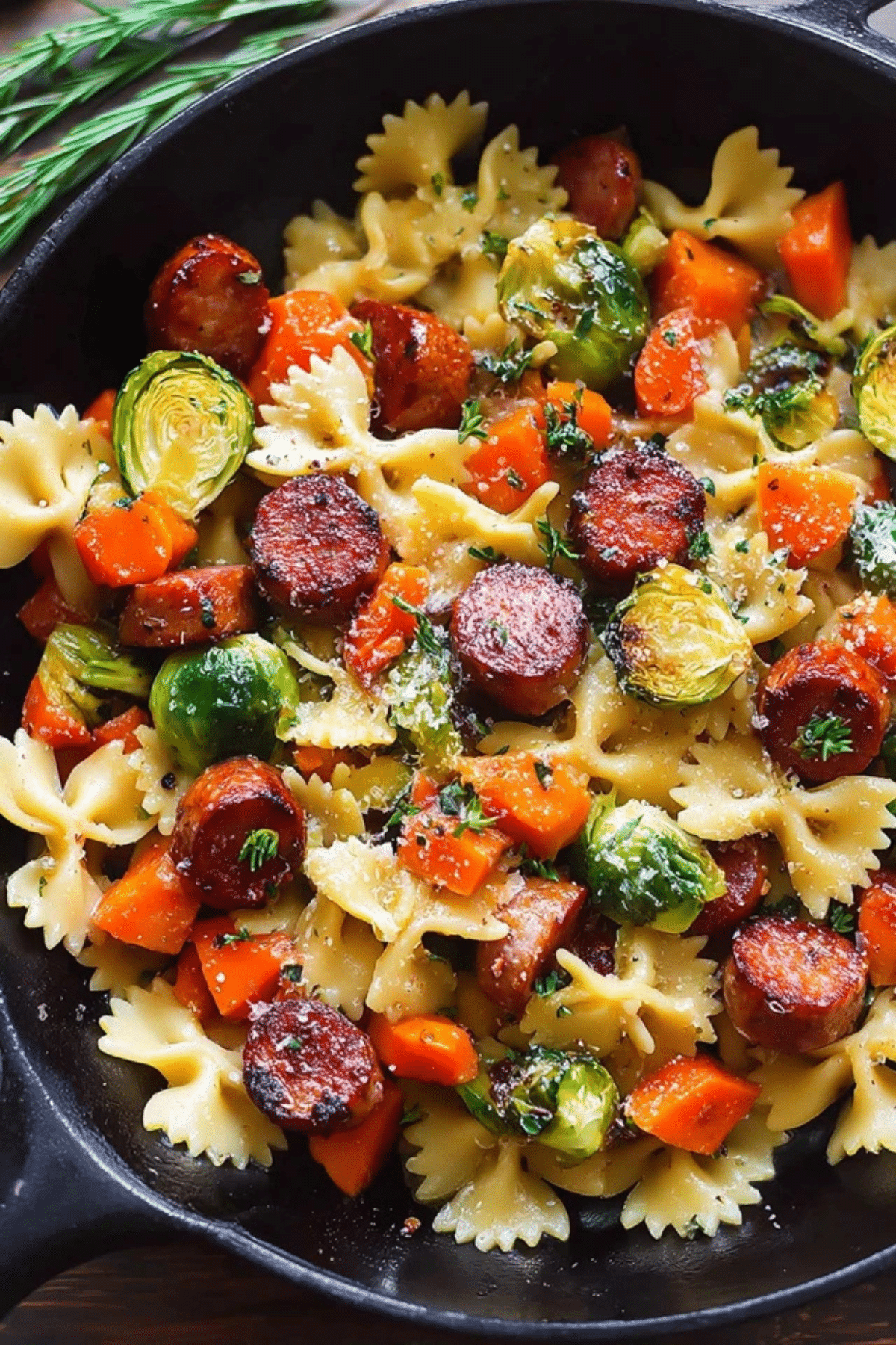 Sausage veggies pasta is a hearty, flavorful dish featuring smoked sausage, roasted Brussels sprouts, butternut squash, and pasta in a rich garlic butter sauce. It’s a perfect meal for any occasion, from weeknight dinners to holiday feasts.