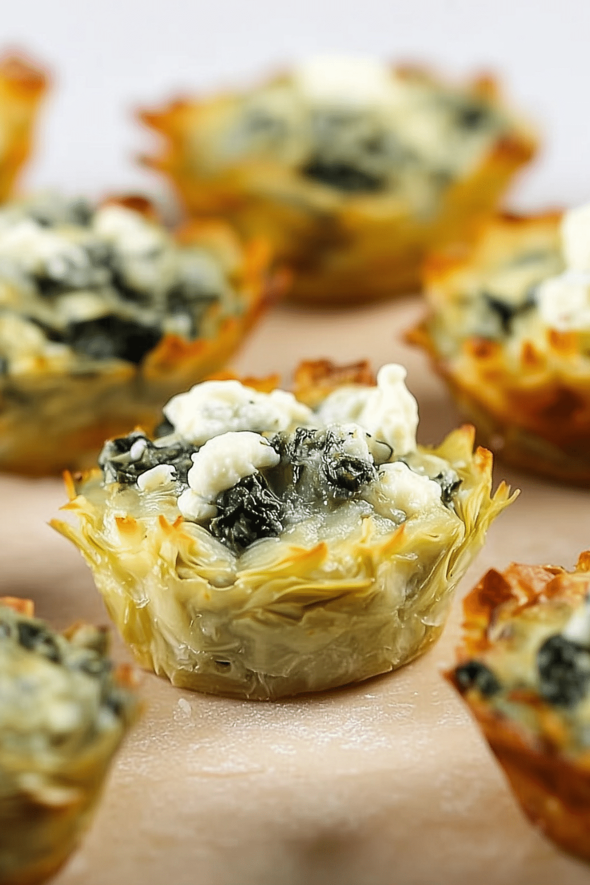 While the filling can be frozen on its own for up to a month, it’s not recommended to freeze fully assembled spinach artichoke bites. The phyllo shells may become soft or lose their crispness after thawing. For best results, freeze the filling separately and assemble fresh before baking.